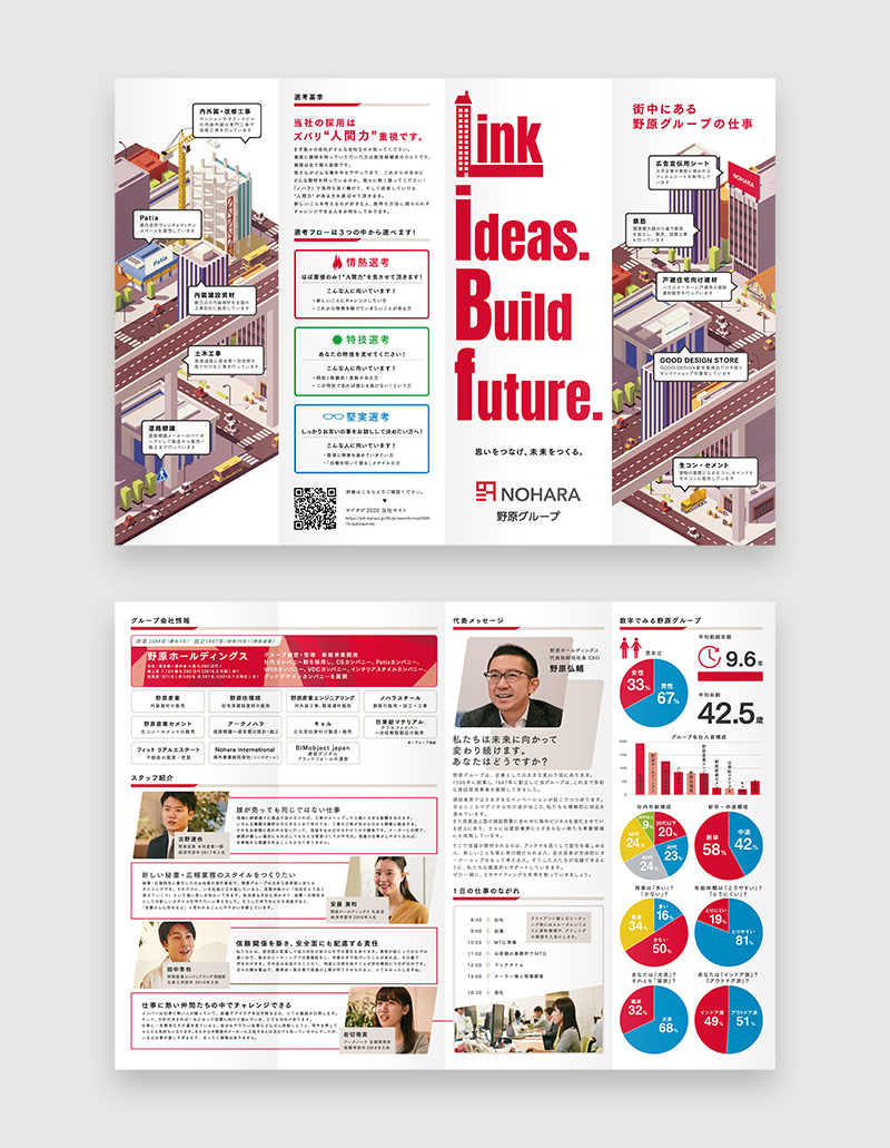 「野原ホールディングス」様がリクルートフェアに出展した際のパンフレットを制作いたしました。
