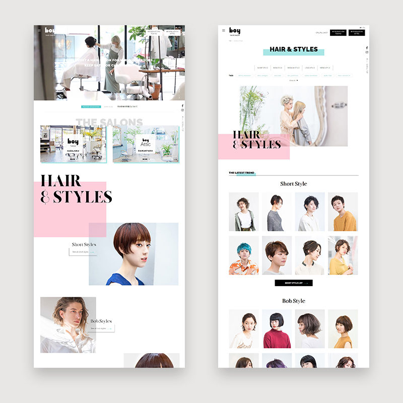 boyの素晴らしさを既存サイトでは表現出来ていなかったので、新webサイトでは、その歴史やスタッフさんの個性、ヘアースタイル提案などをきちんと表現し、ユーザに伝わるサイトを目指しました。