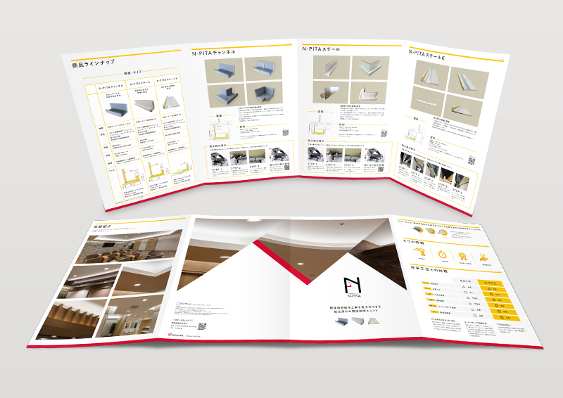 野原ホールディングス様が展開する間接証明ユニット"N-PITA"パンフレットの制作です。(パンフレットの制作以外にもWEBページの制作もご依頼頂いております。)